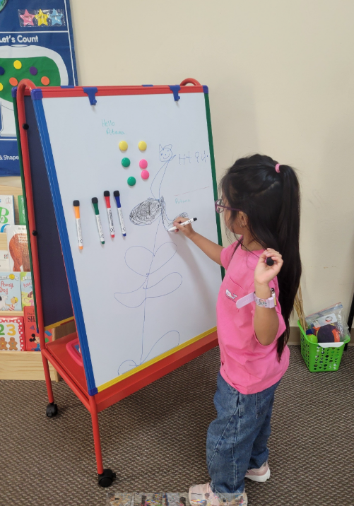 Moms & Tots is a free literacy program for mothers and their preschool-aged children (ages 3-5). In the program, Moms improve their English and literacy skills in small-group classes while their children build early learning foundations in a nurturing classroom nearby. Through guided activities and interactive learning, little ones build early language skills, practice letters and numbers, and grow their confidence to prepare them for kindergarten.
